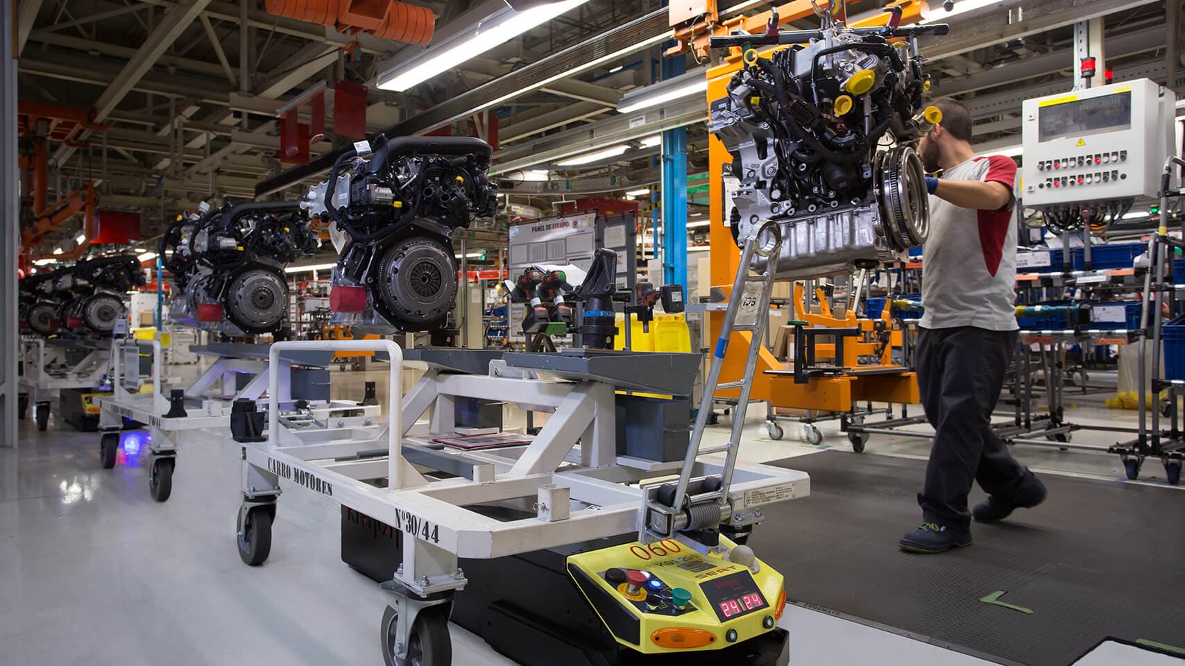 - 125 robots and 7,000 factory workers: They scan a barcode to make sure they transport the right part, and a sensor then opens the warehouse door so they can follow their circuit. This is how some of the 125 AGVs begin their day, routinely crossing paths with each other and with the 7,000 factory workers in what appears to be a fully synchronised dance performance. The automatic robots transport engines, gearboxes, shock absorbers or door windows, and their individual payload is up to 1,500 kg in weight.